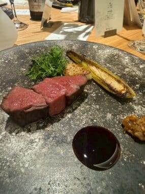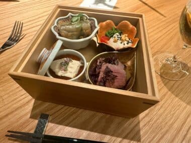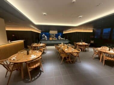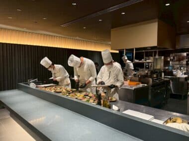 今回のメインイベントの一つが、目の前で仕上げられるお料理です。 ライブキッチンから漂う香ばしい香りや、シェフの鮮やかな手さばき。